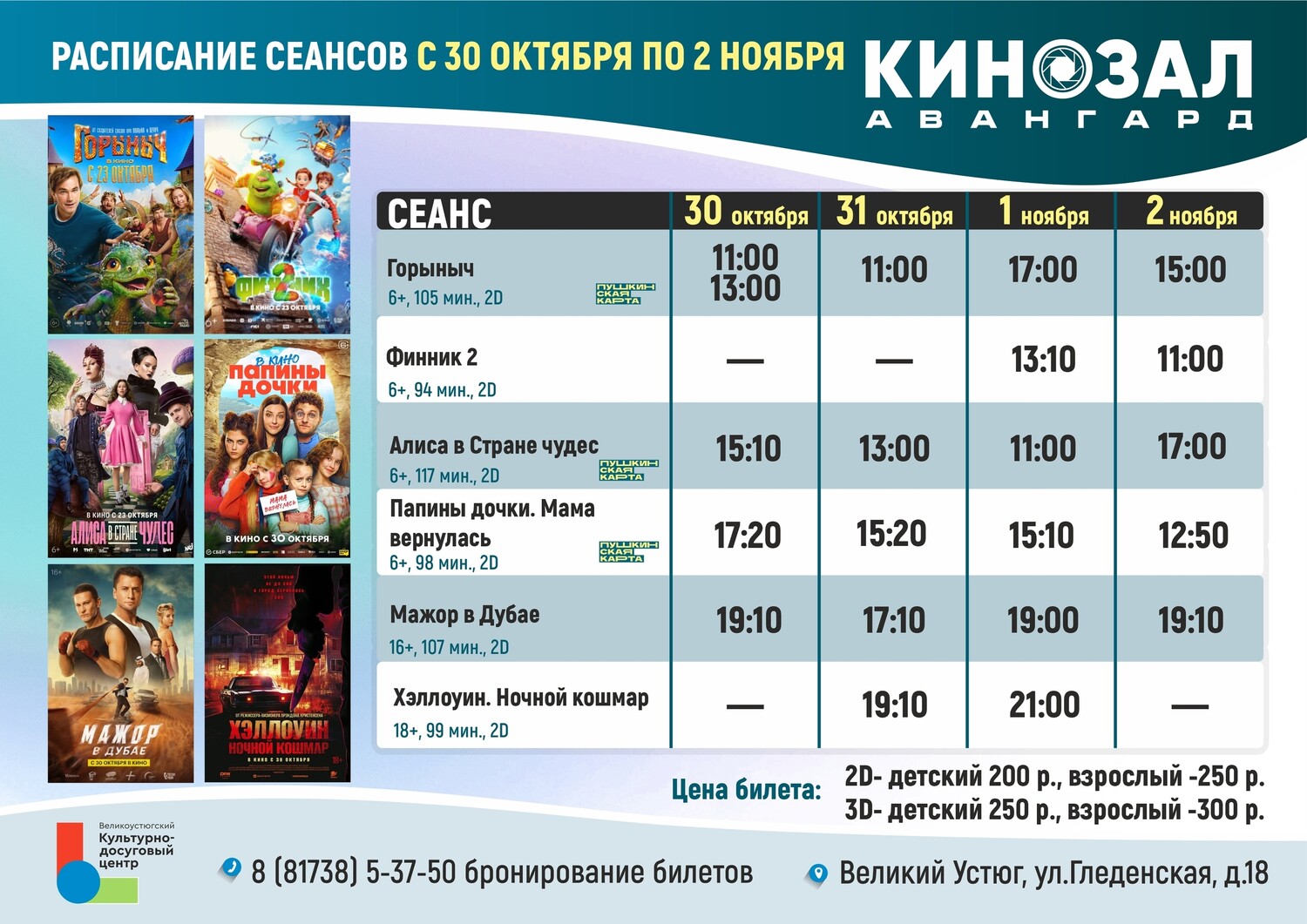 Купить билет можно через официальный сайт МБУК "Великоустюгский культурно-досуговый центр" кдцву.рф/ в разделе "КУПИТЬ БИЛЕТ В КИНО".