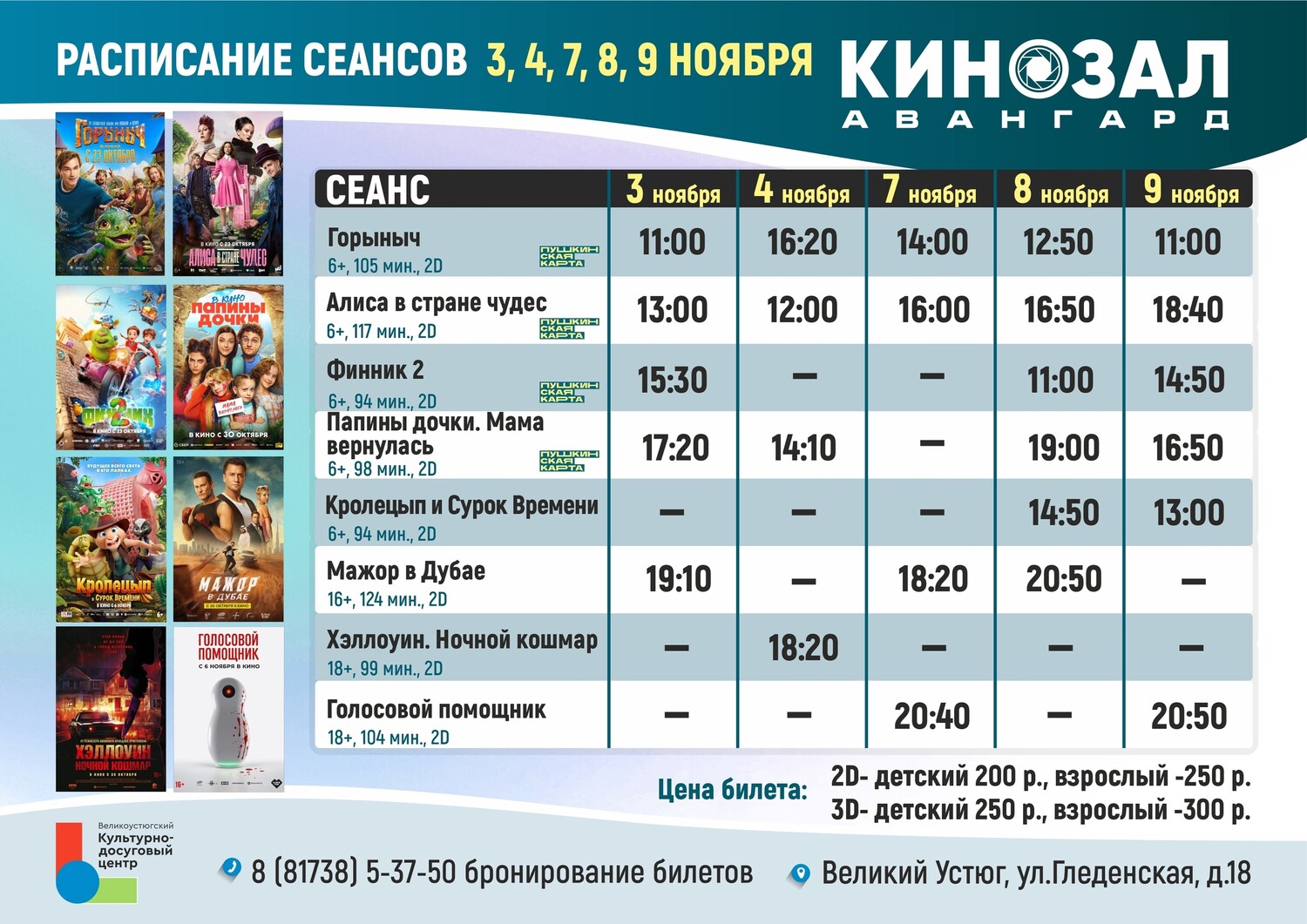 Купить билет можно через официальный сайт МБУК "Великоустюгский культурно-досуговый центр" кдцву.рф/ в разделе "КУПИТЬ БИЛЕТ В КИНО".