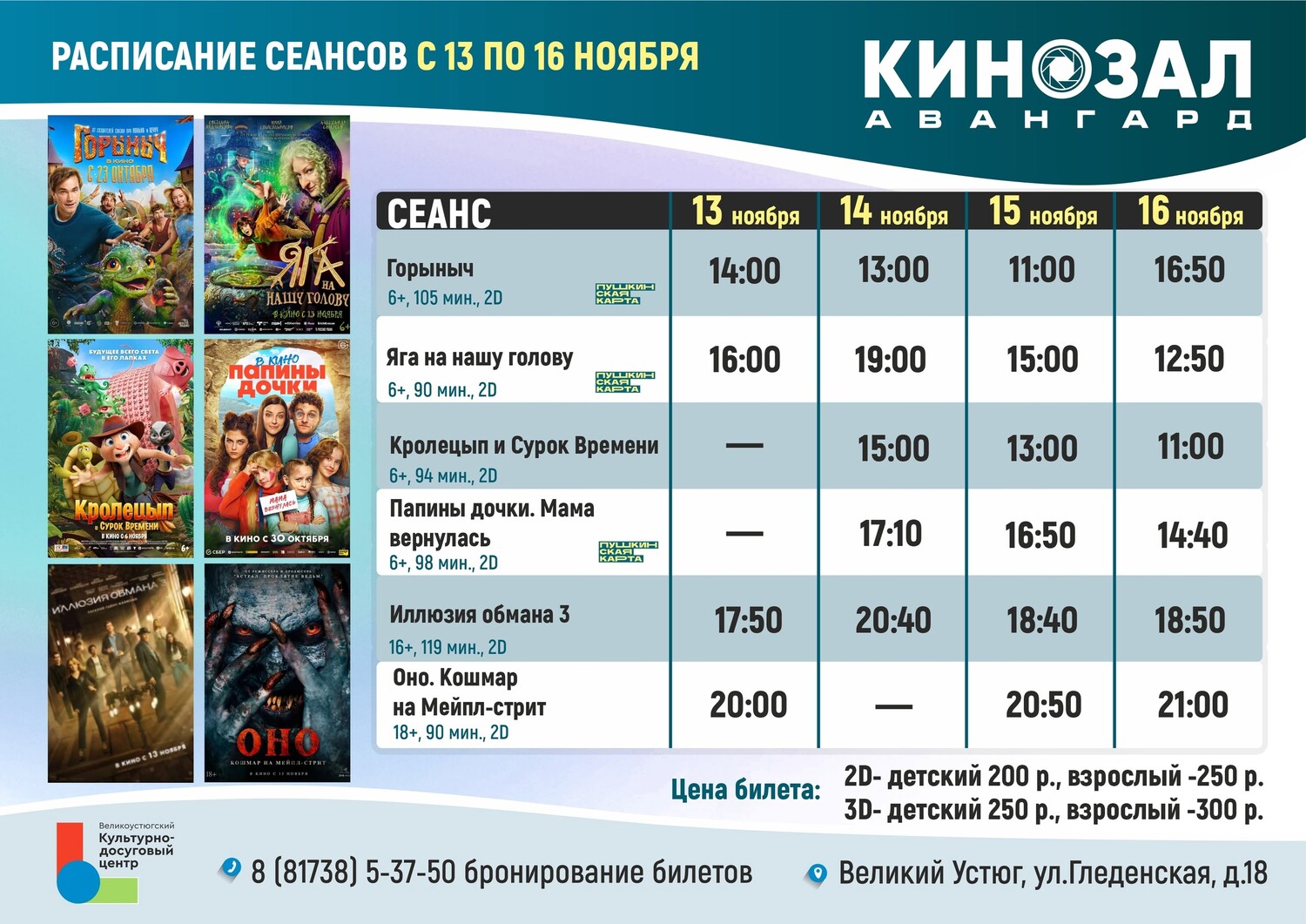 Купить билет можно через официальный сайт МБУК "Великоустюгский культурно-досуговый центр" кдцву.рф/ в разделе "КУПИТЬ БИЛЕТ В КИНО".