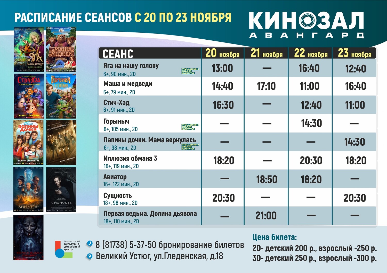 Купить билет можно через официальный сайт МБУК "Великоустюгский культурно-досуговый центр" кдцву.рф/ в разделе "КУПИТЬ БИЛЕТ В КИНО".