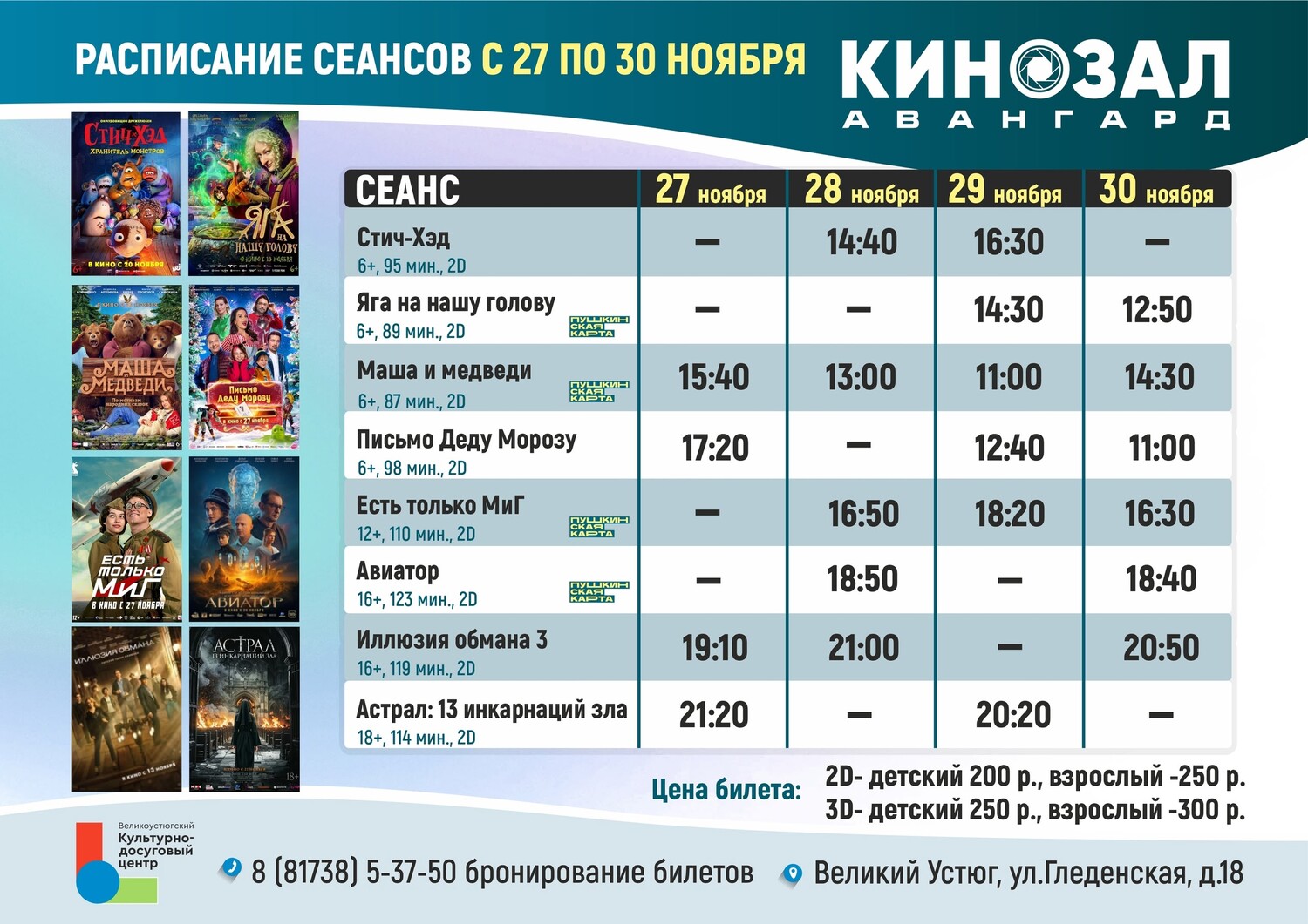 Купить билет можно через официальный сайт МБУК "Великоустюгский культурно-досуговый центр" кдцву.рф/ в разделе "КУПИТЬ БИЛЕТ В КИНО".