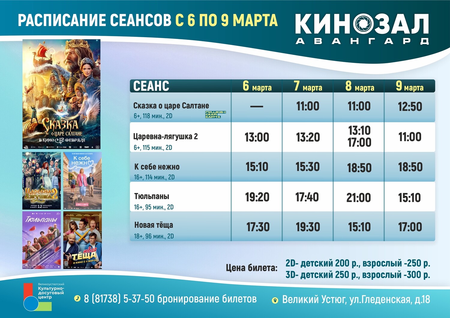 Купить билет можно через официальный сайт МБУК "Великоустюгский культурно-досуговый центр" кдцву.рф/ в разделе "КУПИТЬ БИЛЕТ В КИНО".