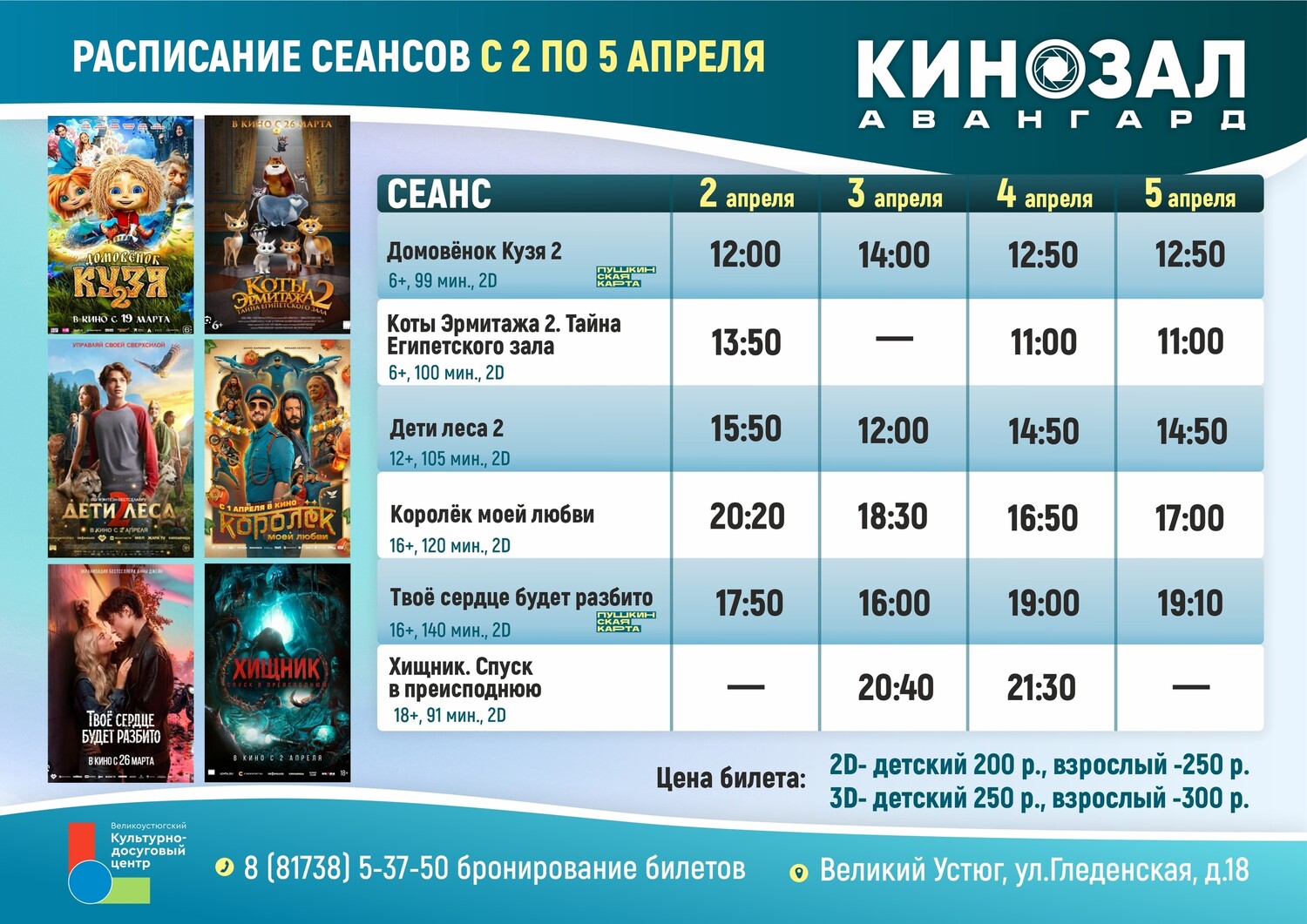 Купить билет можно через официальный сайт МБУК "Великоустюгский культурно-досуговый центр" кдцву.рф/ в разделе "КУПИТЬ БИЛЕТ В КИНО".