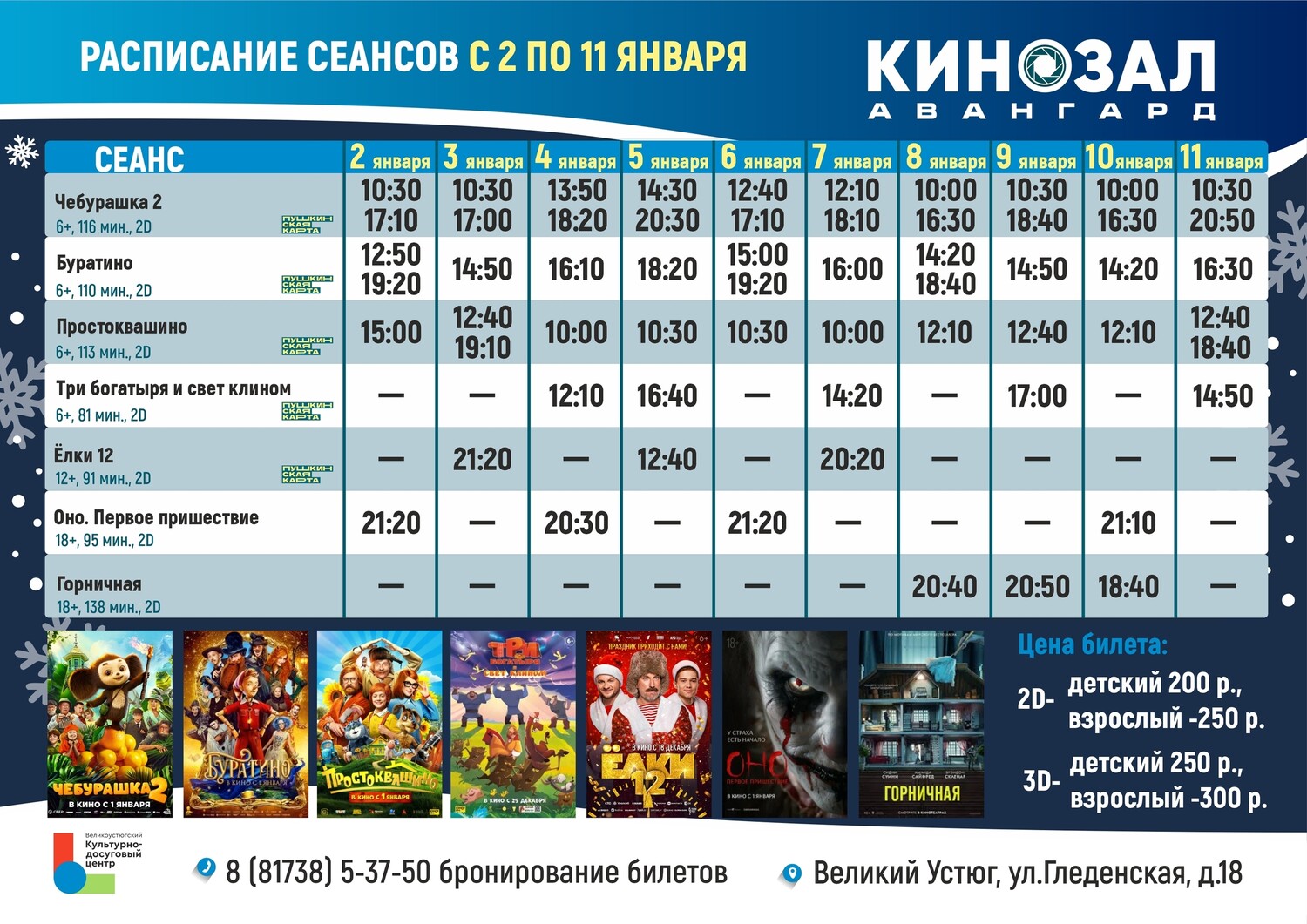 Купить билет можно через официальный сайт МБУК "Великоустюгский культурно-досуговый центр" кдцву.рф/ в разделе "КУПИТЬ БИЛЕТ В КИНО".