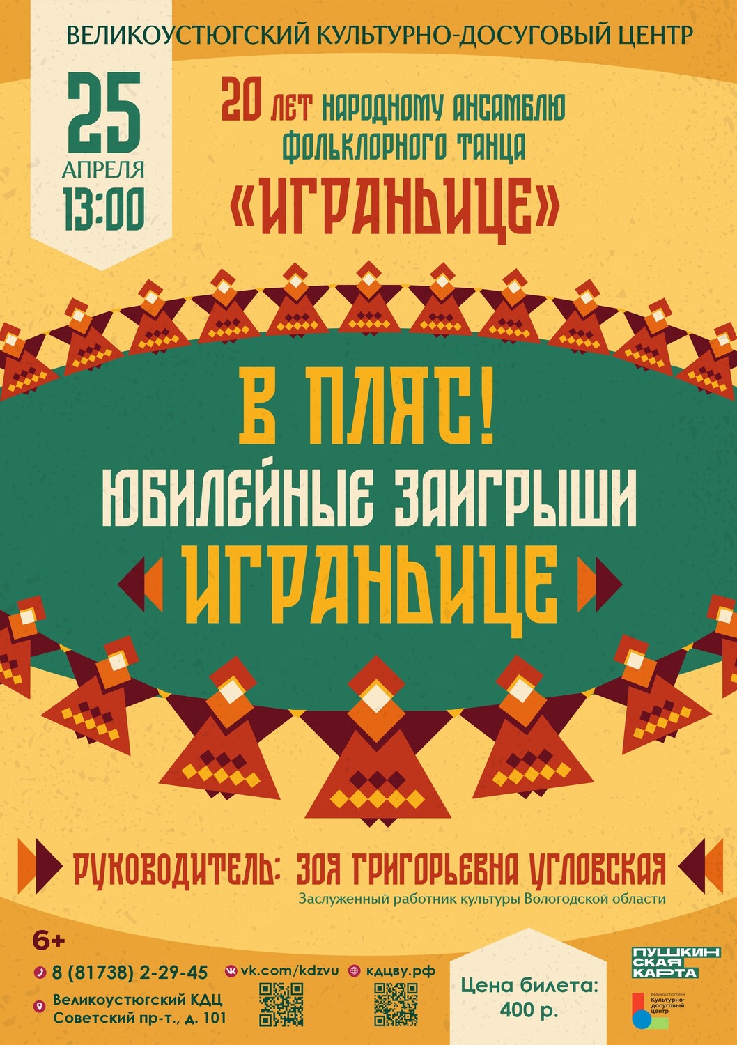20 лет коллектив бережно хранит и развивает танцевальные традиции нашего края под чутким руководством Заслуженного работника культуры Вологодской области Зои Григорьевны Угловской! Это не просто концерт — это путешествие в прошлое, которое становится близким и понятным каждому!