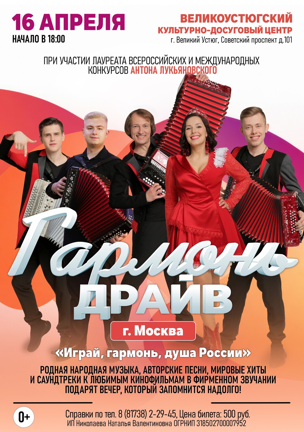 16 апреля в 18:00 гармонь зазвучит особенно свежо и ярко — так, что объединит сердца зрителей всех возрастов.