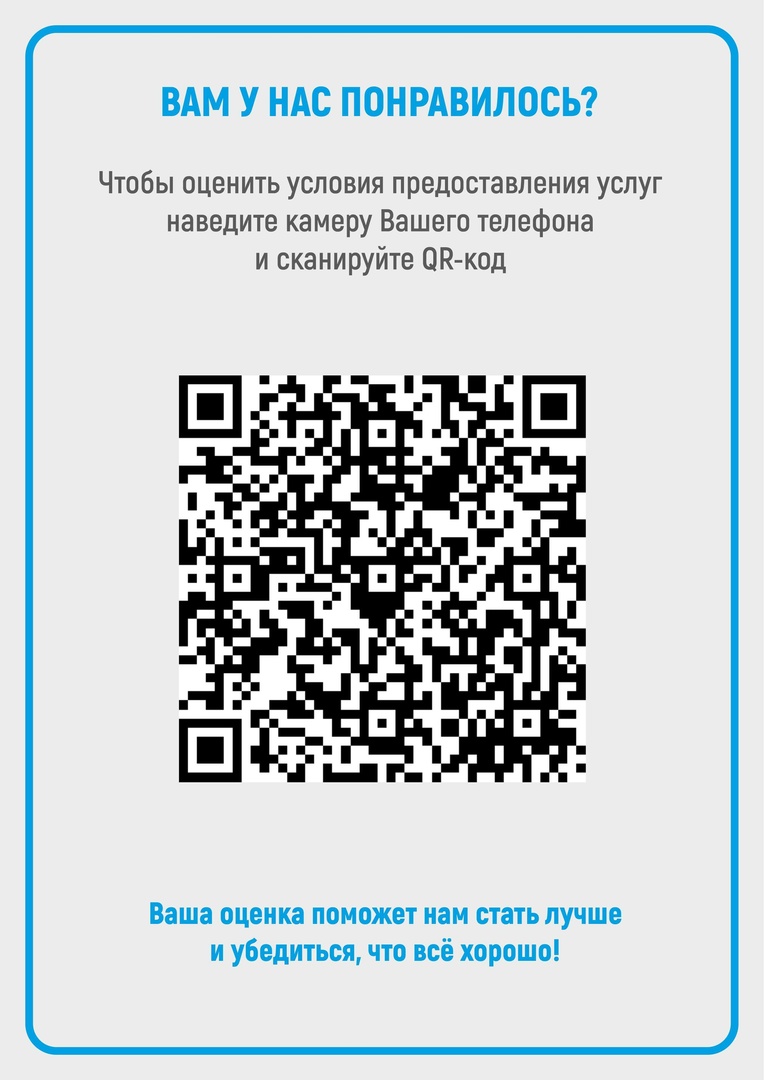 Просим Вас оценить работу нашей организации, перейдя по кью-ар коду.Министерство культуры Российской Федерации приглашает Вас принять участие в оценке удовлетворенности граждан работой государственных и муниципальных организаций культуры, искусства и народного творчества.Исследование проводится с помощью анонимной анкеты.
