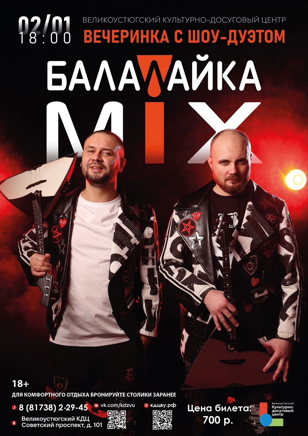Запоминайте скорее! 2 января в 18:00! Великоустюгский КДЦ! Вечеринка с шоу-дуэтом «БАЛАЛАЙКА MIX»