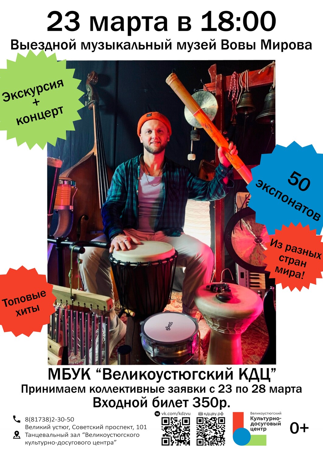 Арт-музыкант и автор-исполнитель Вова Миров проведет вас через волшебный мир музыкальных инструментов в выездном музыкальном музее, где вас ждут более 50 уникальных экспонатов из разных уголков планеты!