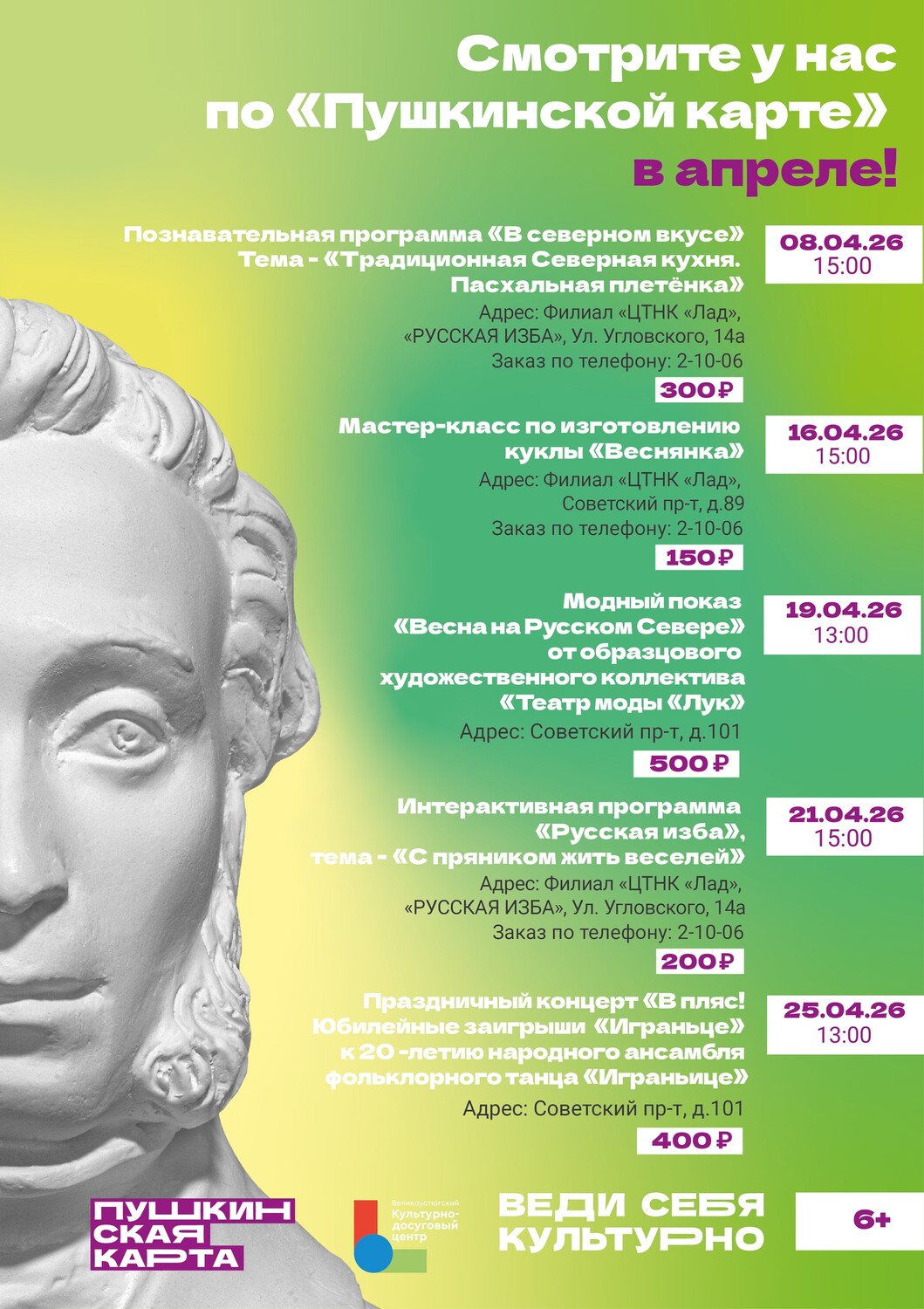 Оплатить мероприятие Великоустюгского культурно-досугового центра по "Пушкинской карте" можно через официальный сайт учреждения по ссылке кдцву.рф/ в разделе "купить билет онлайн" или в кассе культурно-досугового центра.