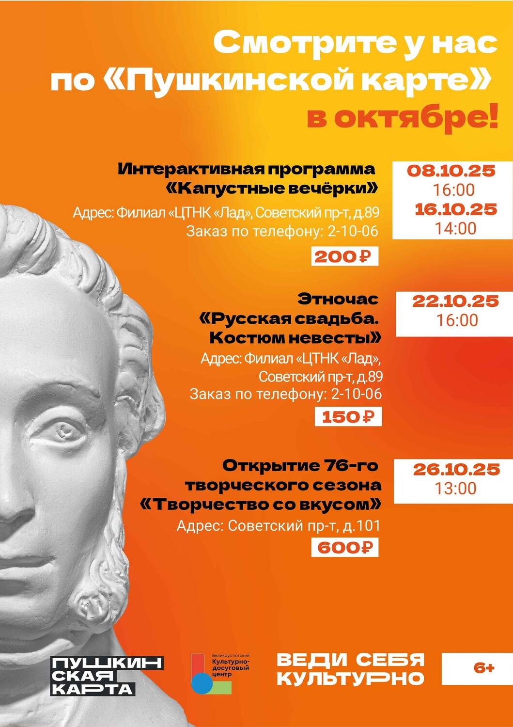 Оплатить мероприятие Великоустюгского культурно-досугового центра по "Пушкинской карте" можно через официальный сайт учреждения по ссылке кдцву.рф/ в разделе "купить билет онлайн" или в кассе культурно-досугового центра.