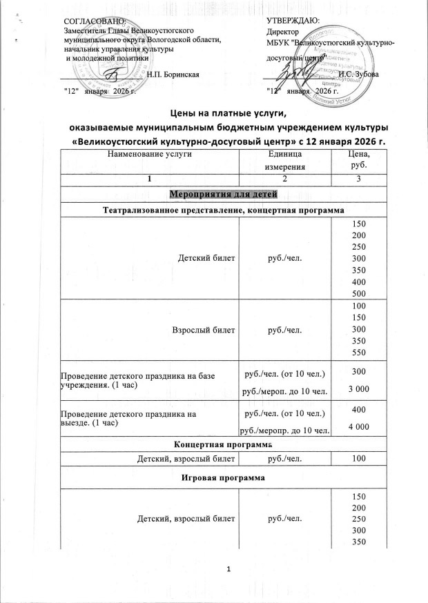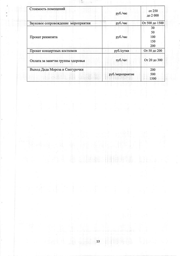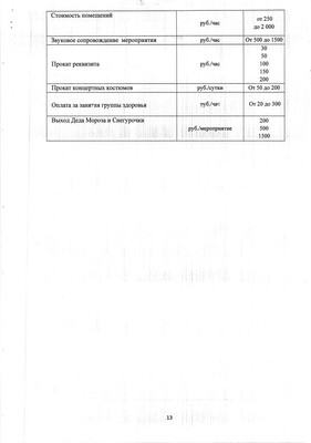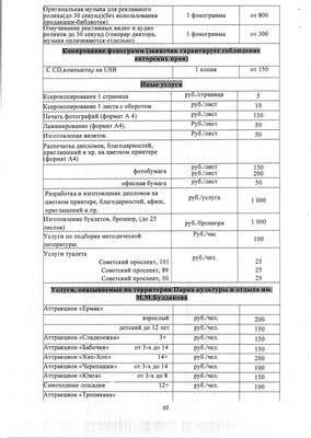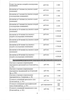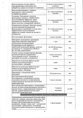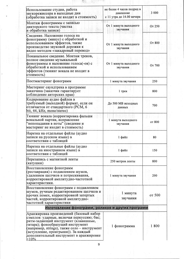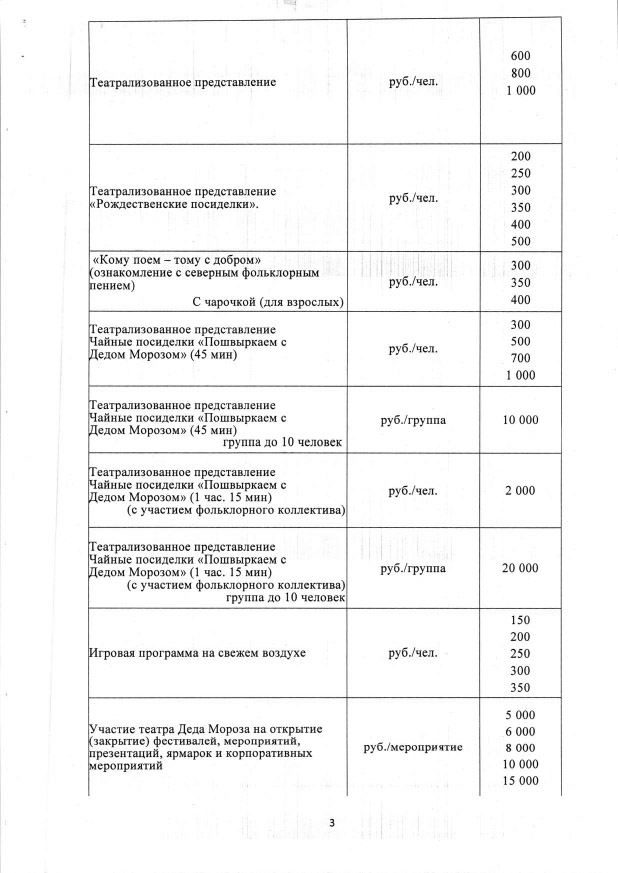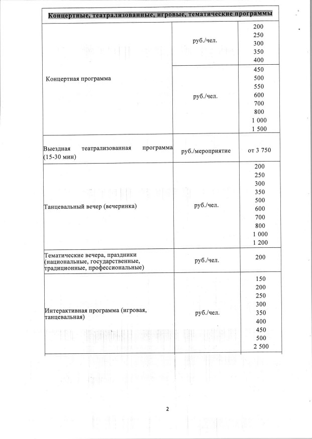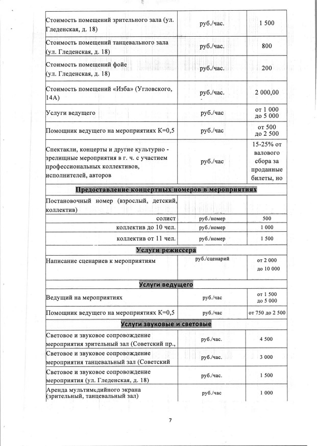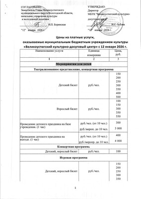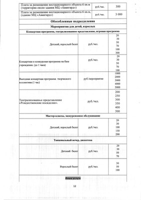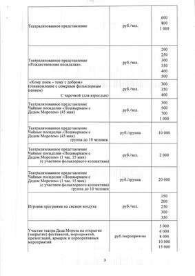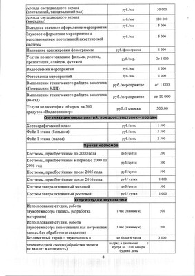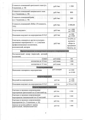 Прайс-лист на услуги театра