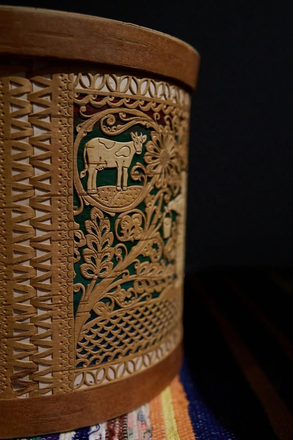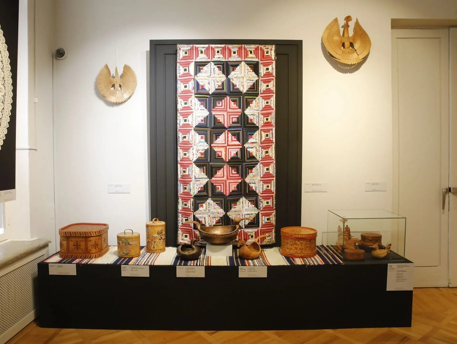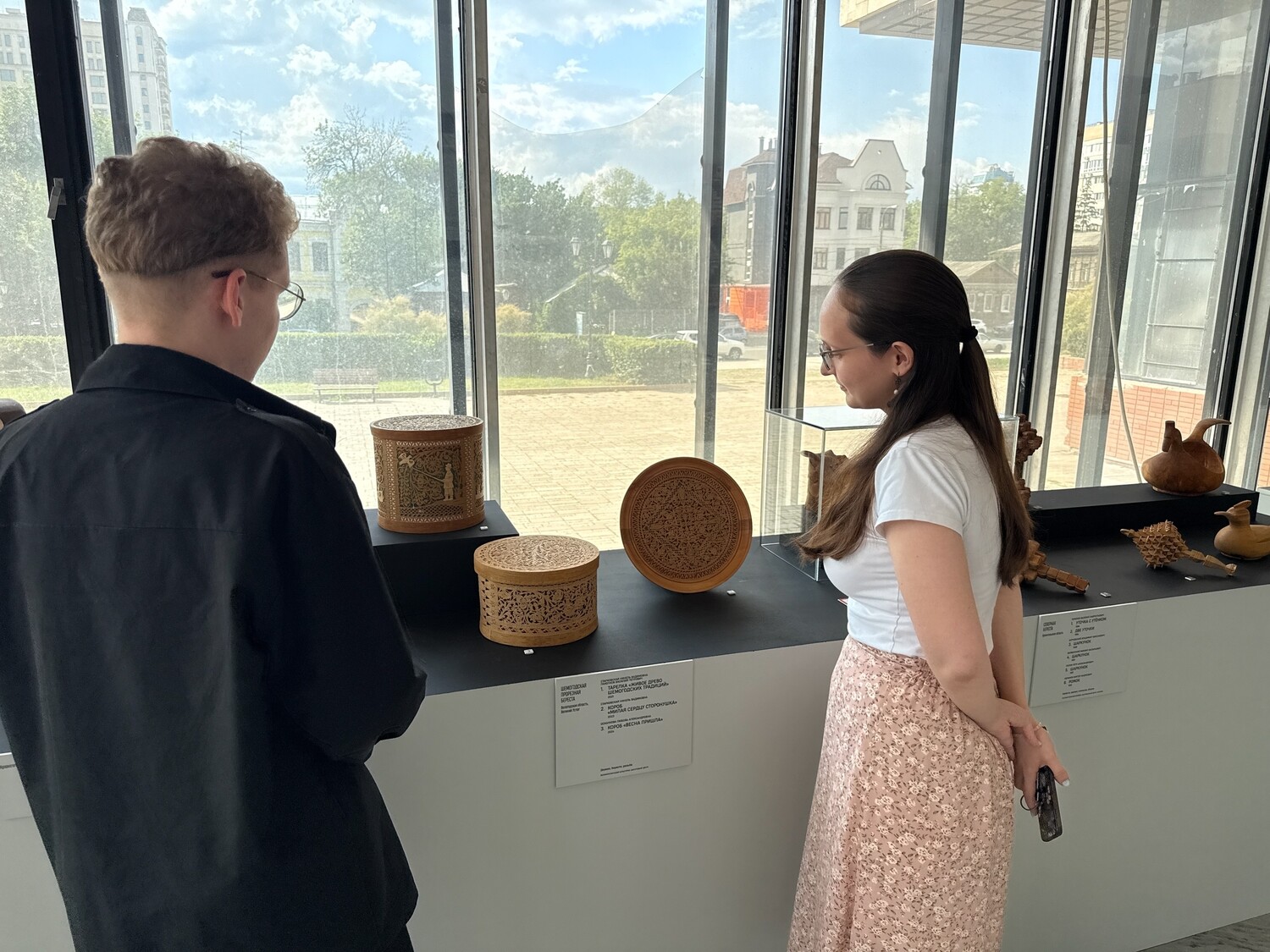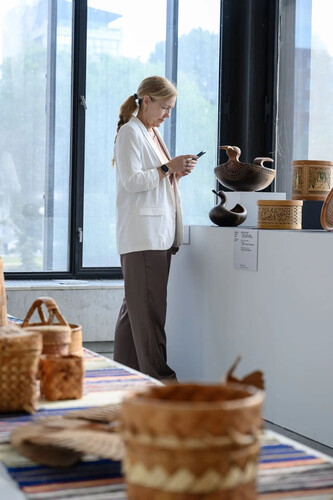 Их шемогодская береста и великоустюгская роспись представлены в рамках выставки, построенной по географическому принципу: СЕВЕР – ЮГ – ВОСТОК – ЦЕНТР. Экспозиция объединяет коллекции «РОСИЗО», Музея искусства народов Востока, Национального музея Татарстана, Союза художников России и частных собраний.