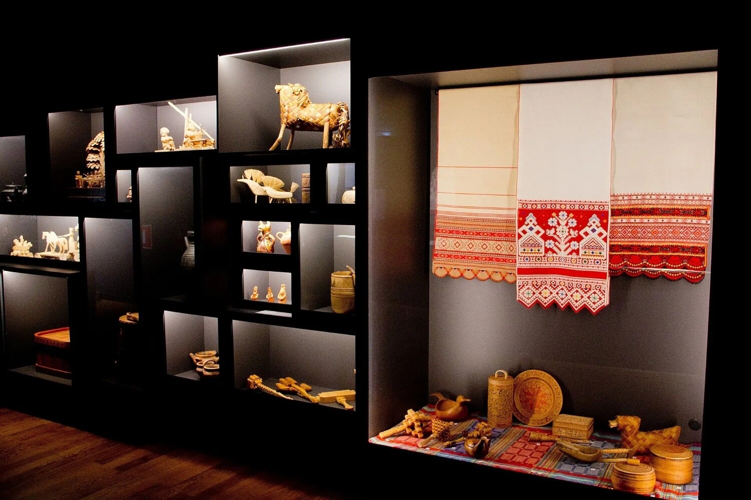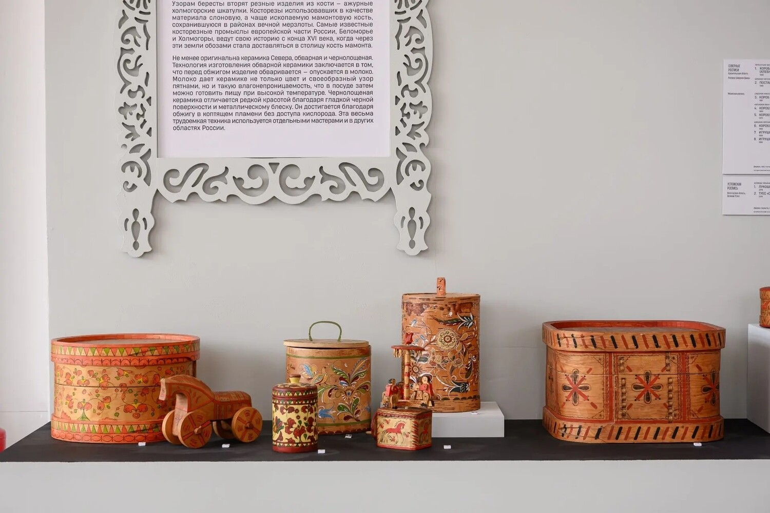 Сейчас выставка «Смыслы и промыслы. Через Север на Восток» проходит в «РОСИЗО» (Москва) и будет работать до 8 марта 2026 года — приглашая зрителей в путешествие по традициям народного искусства России.