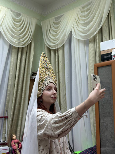 Певица MATANYA, автор музыки на стыке фольклора, арт-кабаре и «тёмной сказочной нежности», окунулась в мир устюжских обычаев: примерила женские головные уборы, сплела фенечку на счастье — в технике вологодского кружева и, конечно, — не могла удержаться: запела — тихо, проникновенно, по-домашнему, как бывает, когда традиция встречает современность — и узнаёт в ней родную душу.