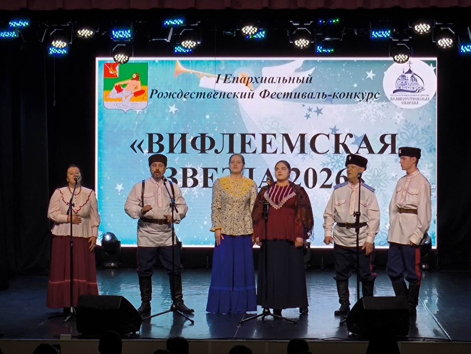 Заслуженный фольклорно-этнографический коллектив «Истоки» (руководитель — Мальцева Светлана Анатольевна, аккомпаниатор — Мелехина Наталия Валериевна) и Народный ансамбль казачьей песни «Сухонская вольница» (руководитель — Аксёнов Сергей Николаевич, аккомпаниатор — Корепин Сергей Павлович) с радостью приняли участие в Рождественском Епархиальном фестивале-конкурсе «Вифлеемская звезда» в качестве приглашённых гостей!