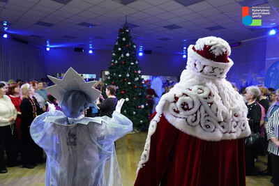 Под звуки праздничных мелодий гости вышли к главной ёлке, чтобы: спеть новогодние песни, вспомнить, как водили хороводы в юности, и — самое главное — встретиться с Российским Дедом Морозом. Он пришёл не «по графику», а — по зову сердец: с тёплыми словами, искренними пожеланиями для каждого.