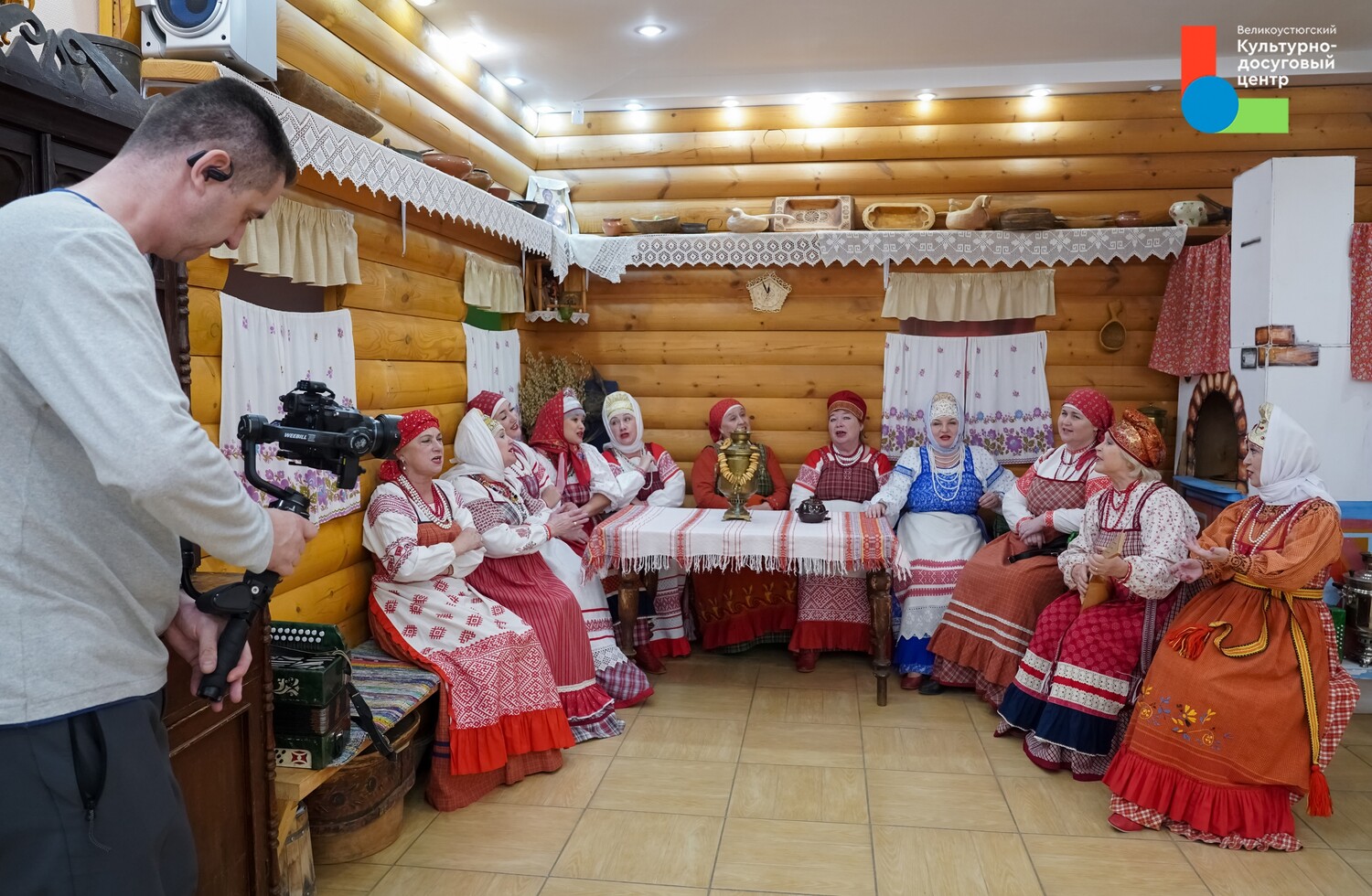 Заслуженный работник культуры Российской Федерации Татьяна Григорьевна Лебедева и Заслуженный работник культуры Вологодской области Зоя Григорьевна Угловская подарили съемочным кадрам дух Великоустюгской земли: поведали через творчество и слова о народной песне, народных плясках, культурных традициях и устоях Великого Устюга.