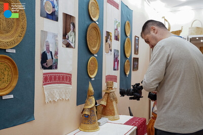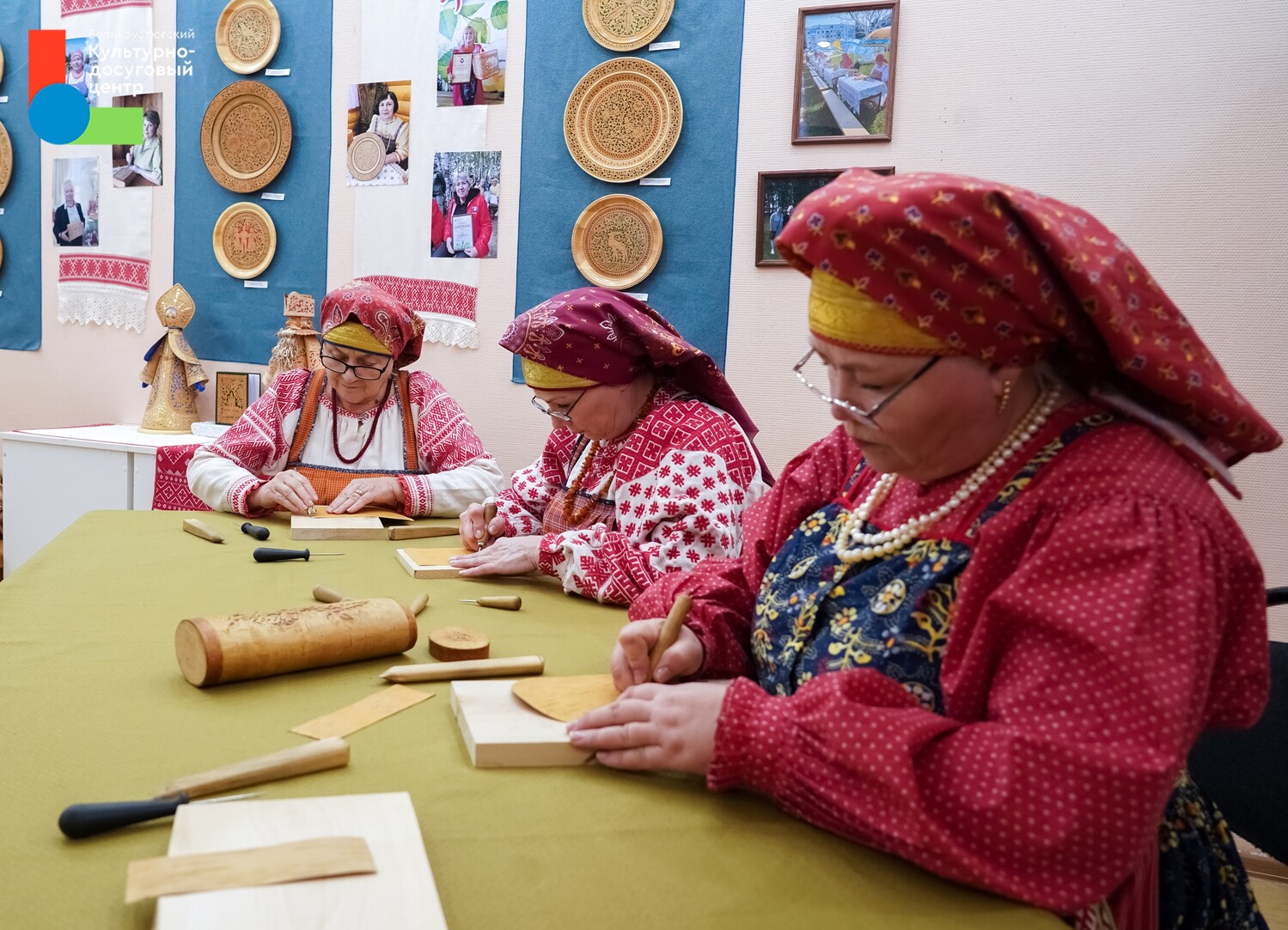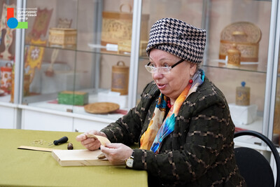 А мастера Центра ЦТНК «Лад» показали, как дышит береста под ножом — тонко, чётко, с уважением к традиции. А художник декоративно-прикладного искусства, работающая в уникальном народном художественном промысле Русского Севера — шемогодской прорезной резьбе по бересте Татьяна Георгиевна Вязова делилась своей историей знакомства с этим промыслом, рассказывала, как рождается орнамент, почему береста — «живой материал», и как в каждом узоре — отражение мира, веры и памяти.